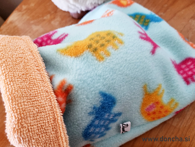 Material Flis, bombaž/frotir. Vreča je pralna, skriti šiv